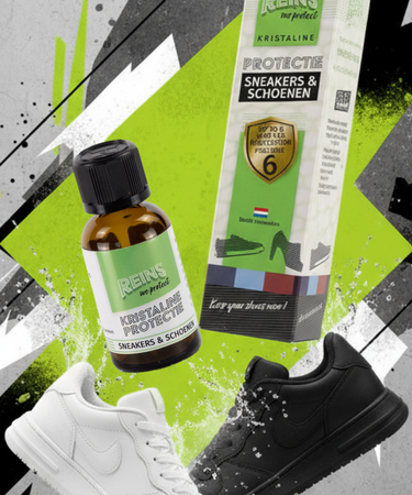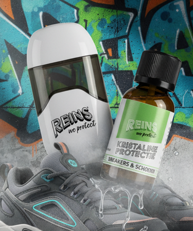 De REINS Starterskit Sneakers & Schoenen is jouw oplossing om je sneakers, schoenen en accessoires langer mooi te houden. De kit bevat alles wat je nodig hebt: onze innovatieve kristalineprotectie, de REINS reiniger, een zachte microvezeldoek, een oplaadkabel en een ultrasone vernevelaar (gevuld voor 8 paar schoenen). Samen zorgen ze voor een duurzame beschermlaag op je sneakers en schoenen die vuil actief afbreekt en schoonmaken makkelijker maakt.